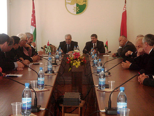 После встречи с парламентариями белорусская делегация направилась в правительство Абхазии, где их принял временно исполняющий обязанности премьер-министра Леонид Лакербая.