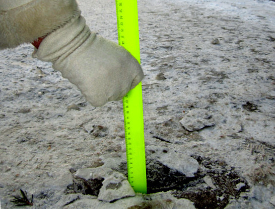 В качестве примера она привела ситуацию, сложившуюся непосредственно у здания администрации Волгограда. Здесь экологи измерили толщину льда на тротуаре. Она превысила 5 см.
