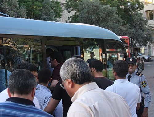 Однако уже за час до назначенного времени эта часть бульвара и территория вокруг близлежащей станции метро "Сахил" были взяты под контроль полиции и лиц в штатском. Как только появлялись небольшие группы участников акции, их сразу задерживали и сажали в специально снятые с маршрутов автобусы и полицейские машины, сообщает корреспондент "Кавказского узла".