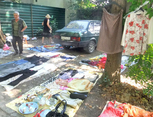 Блошинный рынок. Сочи, 15 июля 2012 г. Фото Светланы Кравченко для "Кавказского узла"Однако данный ответ жителей микрорайона не устраивает. "Это наши  придомовые территории, места общего пользования, за которые мы платим, чтобы здесь была чистота. По какому праву нарушается среда обитания? Мы понимаем малоимущих граждан, но почему из одной проблемы должны возникать другие?", - возмущается жительница одного из домов на улице Новоселов Ольга Сенцова.
