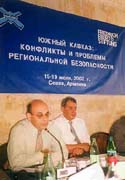 Около 50 участников из Армении, Азербайджана и Грузии приняли участие в конференции "Южный Кавказ: конфликты и проблемы региональной безопасности" (15-19 июля 2002 г.). состоявшейся в г. Севан (Армения). На конференции были обсуждены следующие проблемы: внутренний потенциал разрешения и предотвращения южнокавказских конфликтов; Южный Кавказ в контексте интересов глобальных и региональных центров влияния; перспективы региональной интеграции и формирования единой системы безопасности; Южный Кавказ как единое геополитическое и геоэкономическое пространство.