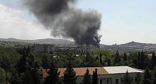 На окраине Тбилиси после взрыва резервуара с нефтью начался пожар