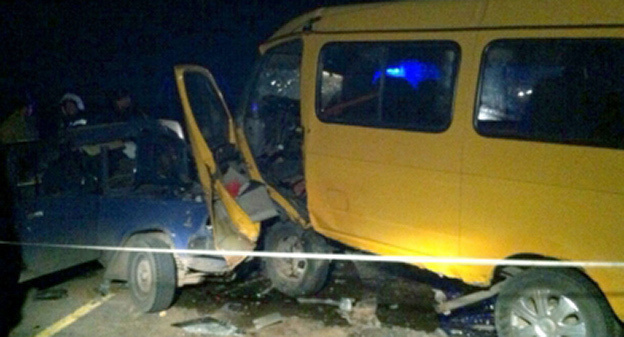 В Наримановском районе Астраханской области в результате лобового столкновения автомобиля ВАЗ 2107 и маршрутного такси погибли три человека и один пострадал.