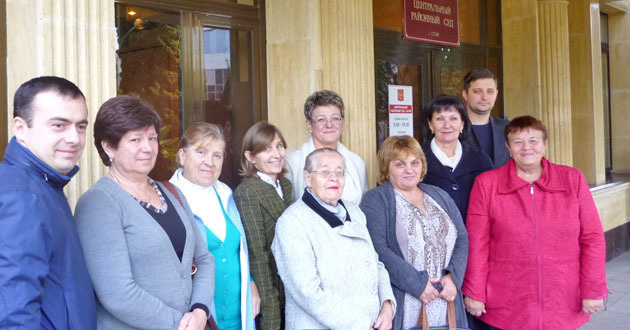 Около десяти жителей района КСМ, которые пришли на суд, не были допущены на заседание и остались ожидать пятерых заявителей на улице.