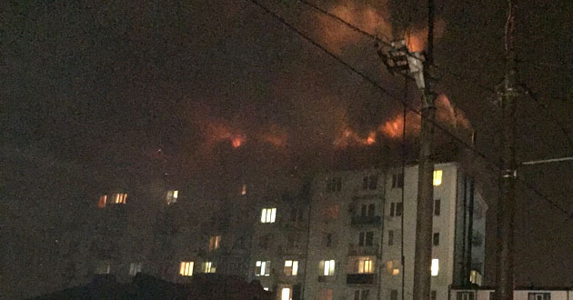 По данным МЧС, в районе "Учхоз" возник пожар на крыше девятиэтажного жилого дома.