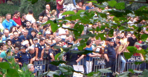 В Тбилиси возникло противостояние между покупателями билетов на матч испанских команд "Барселона" и "Севилья" за Суперкубок УЕФА. Пришедших сегодня утром болельщиков не пускают в очередь. За обеспечением порядка следят полицейские. Одному из потерявших сознание болельщиков потребовалась помощь медиков.
