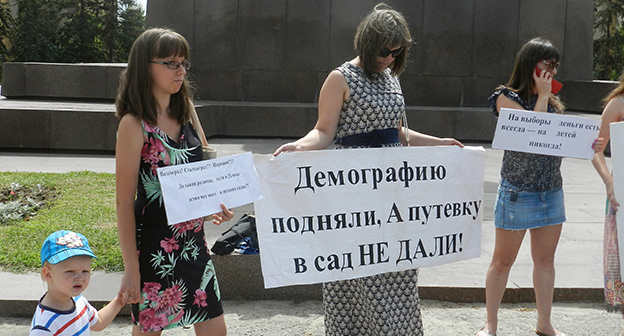 Как сообщал "Кавказский узел", участники прошедшего 5 сентября в Волгограде пикета потребовали от властей обеспечить местами в детсадах всех детей региона до 1 января 2016 года, а также возобновить финансирование в полном объеме уже имеющейся сети детсадов региона.