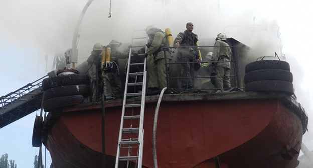 "Пострадавших нет. По предварительным данным, причиной возгорания стало замыкание проводки компрессора на судовой кухне", - приводит слова Дубровского "Интерфакс-Юг".
