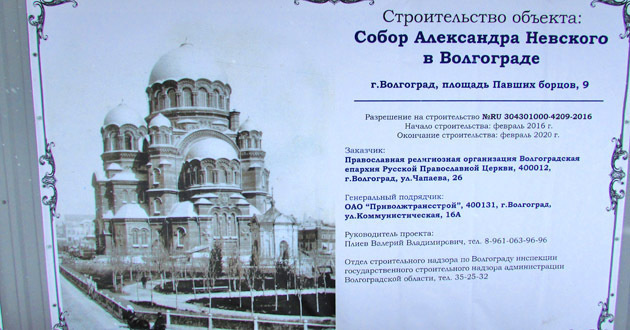 Как писал "Кавказский узел", шестикупольный храм высотой 54 метра планируется построить за пять лет. Перед началом строительства волгоградцы начали сбор подписей с требованием его прекращения. 16 февраля строители начали рыть котлован под храм. 18 февраля работы прекратились после того, как рабочие обнаружили человеческие останки. Однако 19 февраля стройка продолжилась.