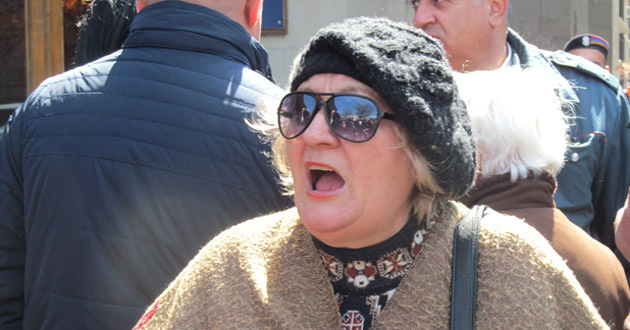 В знак протеста бывшие жители Конда решили перекрыть прилегающую к зданию правительства улицу Тиграна Меца. Однако полиция, выстроившись в ряд, не позволила им выйти на проезжую часть.