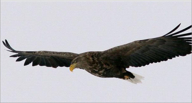 Орлан-белохвост - хищная птица из семейства ястребиных. Одна из самых крупных хищных птиц, масса тела которой от 3 до 6,9 кг, общая длина - от 70 до 98 см, клюв - около 8 см, крыло - 55-72 см, а размах крыльев - 200—250 см. Взрослые птицы темно-бурые, с ярко-белым клиновидным хвостом, светло-бурой головой и желтым клювом, говорится на сайте Ртищевской краеведческой энциклопедии.