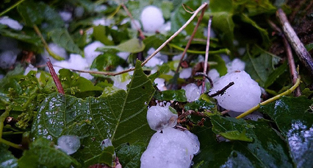 Град, выпавший сразу в нескольких селах Хашурского района в Центральной Грузии, нанес ущерб сельхозугодьям и фруктовым садам. По данным мэрии, повреждены крыши домов и стекла машин.