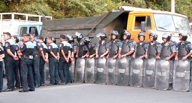 «Кавказский узел» сообщал, что 19 июля произошло столкновение полиции и активистов при попытке манифестантов проникнуть на территорию захваченного здания полка полиции в Ереване. По словам очевидцев, со стороны района Сари Тах группа людей пыталась прорваться к захваченному зданию, а когда полиция перекрыла им дорогу, они стали бросать камни в полицейских.