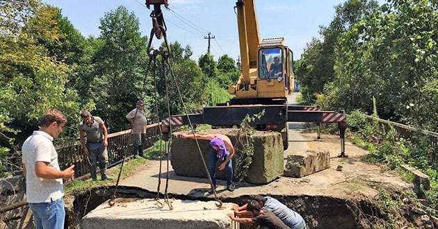 "Ситуация была критическая, опора моста была полностью смыта. "Абхазберегозащита" взяла на себя обязательство восстановить движение", - сказал Тарба.