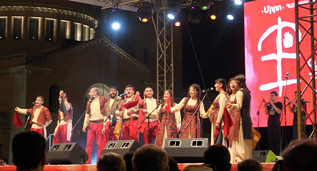 Участники фестиваля - музыкальные коллективы "Акунк", "Карин", "Ван", "Сасна црер", "Таронцинер", "Верадардз", "Сасунк", "Нубар", "Мы и наши горы", "Таврос", "Горани", "Маратук", "Мшо авкер" и детско-юношеская группа "Цовак".