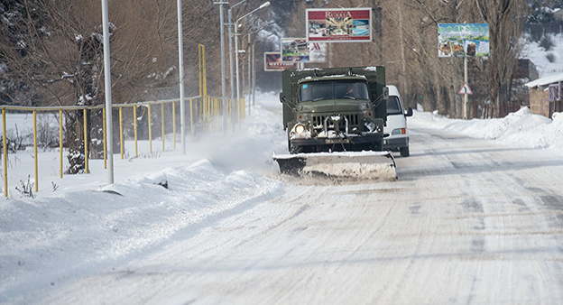 Движение всех видов транспорта на Дилижанском перевале восстановлено. Дорожники ведут работы по расширению заснеженной трассы.