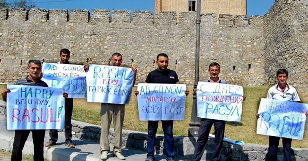 "Полиция обвинила этих людей в нарушении правил проведения пикетов и митингов. Однако это был всего лишь флешмоб, и его участники просто развернули плакаты с лозунгами в поддержку Джафарова. Они никому не мешали, акция проводилась у стен средневековой крепости. Тем не менее, двух участников акции, Али Абдуллаева и Рауфа Абдурахманлы, приговорили к пяти суткам административного ареста, еще четверо были подвергнуты денежным штрафам на сумму в 500 манатов (по курсу на 2014 год - 600 долларов)", - рассказал Багиров.