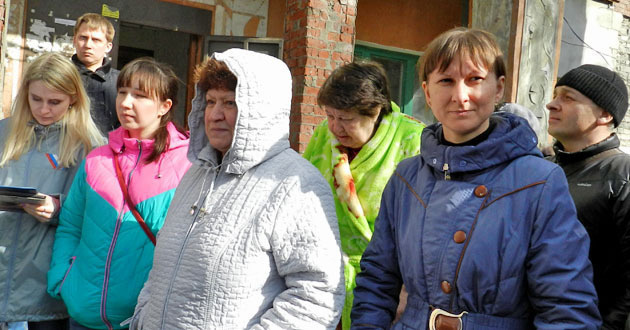 "Дите постоянно падает. Мы просили в ЖЭКе, не дали. У нас постоянные потопы, все течет. Работает только один туалет. Под окном стоят леса, темень ужасная. Кто ключ теряет - лезет в комнату по лесам, дети пугаются. В умывалке скоро лягушки заквакают - постоянно вода течет".