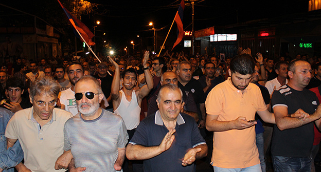 17 июля 2016 года вооруженный отряд "Сасна Црер" из числа сторонников "Учредительного парламента" захватил здание полиции в Ереване. 20 июля 2016 года силовики не позволили активистам передать продукты в захваченное здание, после чего начались столкновения между демонстрантами и полицией на улице Хоренаци. По данным правоохранительных органов, при разгоне манифестантов 136 человек были задержаны.