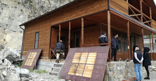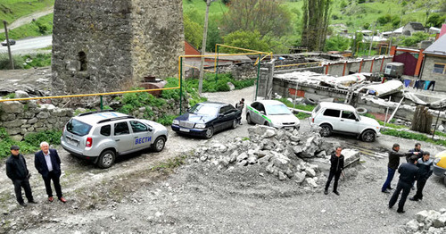 Судебные приставы начали разбирать незаконную постройку возле Дзивгисской крепости в Северной Осетии. 25 мая 2017 г. Фото Эммы Марзоевой для "Кавказского узла"Как заявил в беседе с корреспондентом "Кавказского узла" судебный пристав-исполнитель Сослан Калоев, в июне 2016 года "поступил исполнительный лист о приведении в первоначальный вид земельного участка в с. Дзивгис".