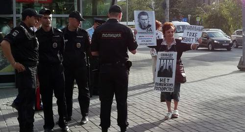 "Нам, по-моему, скоро дышать запретят. Нет никаких предпосылок, чтобы ограничивать наши конституционные права. У нас нет чрезвычайного положения, мы никому не мешаем", - сказала корреспонденту "Кавказского узла" другая участница пикета, Елена Шеина, которая пришла на акцию с плакатом "Свободу политзаключенным!".