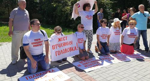 "Да, мы встали на колени перед Владимиром Владимировичем, потому что кроме него нам больше никто не поможет", - заявила корреспонденту "Кавказского узла" пайщица ЖСК "Индекс" Марина Ожигова, которая ранее принимала участие в голодовке.