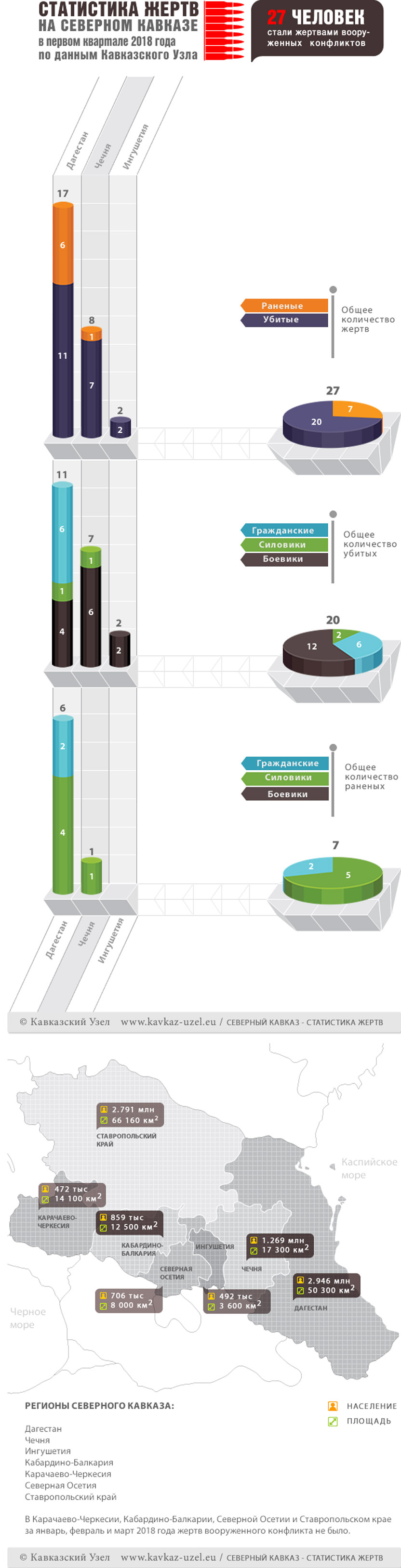 Инфографика. Статистика жертв на Северном Кавказе в первом квартале 2018 года по данным Кавказского Узла
