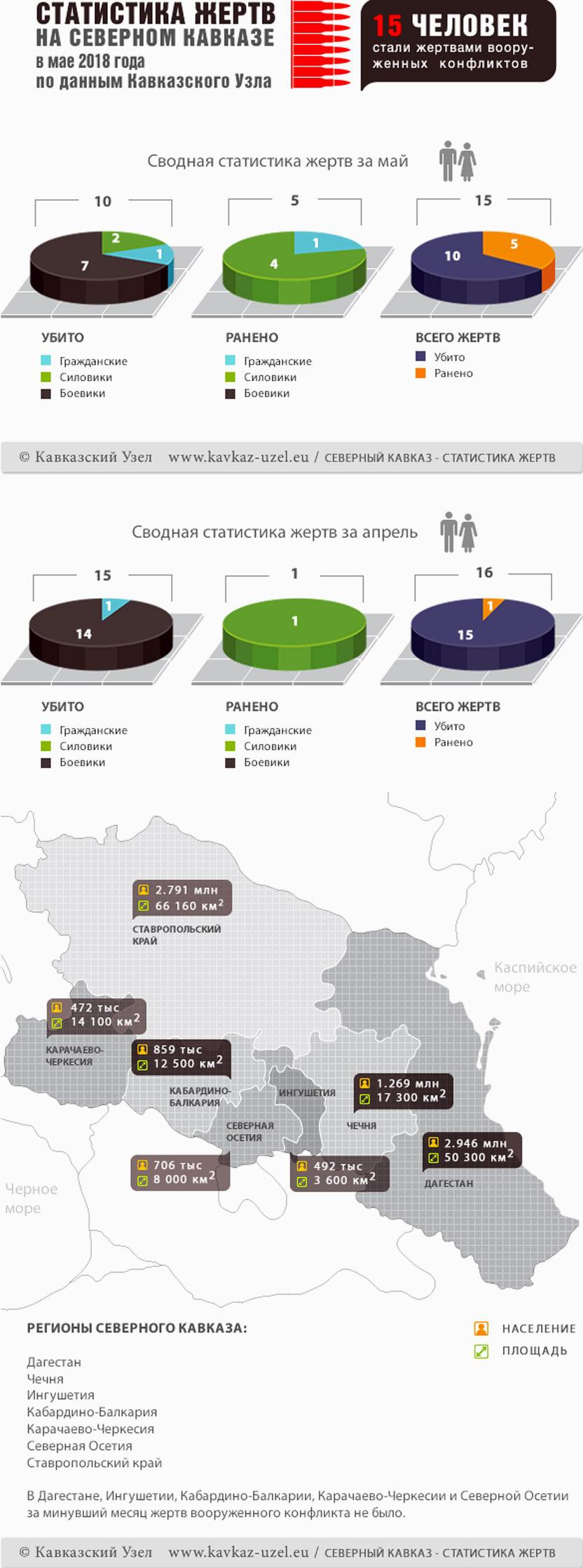 Инфографика. Статистика жертв на Северном Кавказе в мае 2018 года по данным Кавказского Узла