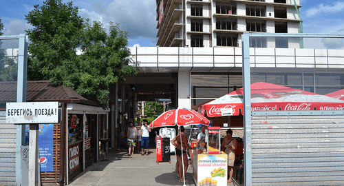 Улица Просвещения застроена так плотно, что два автомобиля на ней не смогут разъехаться. Для этого нужно искать "карман", чтобы пропустить идущий навстречу транспорт. Тротуары отсутствуют. Строения на улице граничат с железнодорожным полотном. Многоэтажные дома плотно примыкают к железнодорожным путям, находясь в их охранной зонеВ малоэтажных строениях, плотно примыкающих друг к другу, имеется множество частных гостиниц, кафе и магазинов, где торгуют фруктами и овощами. Почти нигде нет уголка потребителя и не выставлены документы о праве на оказание платных услуг. Сгоревший самострой, который использовался как гостиница и кафе, соседствовал с одной стороны с салоном красоты, с другой стороны шла торговля фруктами, передает корреспондент "Кавказского узла".