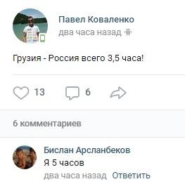 Пользователи соцсетей не подтвердили информацию о двухчасовом ожидании на границе, однако констатировали улучшение ситуации. "Грузия - Россия всего 3,5 часа!" - заявил Павел Коваленко в 20.29 мск в группе "Ситуация на КПП "Верхний Ларс" в соцсети "ВКонтакте", чем вызвал удивление других пользователей.