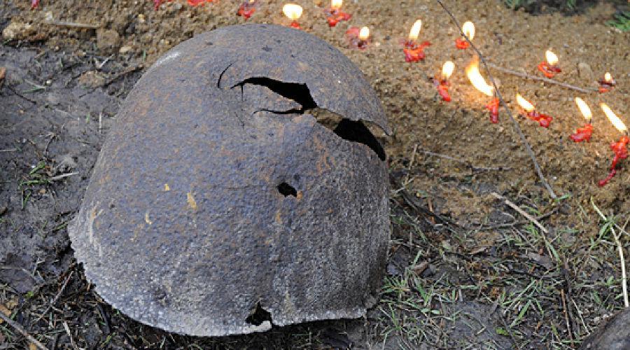 "За 10 дней с начала акции военные обнаружили останки пяти красноармейцев, истлевшее обмундирование, сапоги, ботинки, приклад винтовки Мосина, часть каски, пуговицы, веревки, фрагменты радиостанции (предположительно, немецкой), ложку с инициалами солдата", - цитирует сегодня представителя ЮВО "Интерфакс".