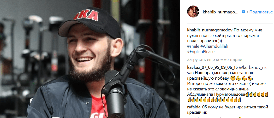 Сам Хабиб Нурмагомедов опубликовал в своем Instagram несколько шутливых постов о произошедшем после боя, не выразив сожаления. "Мое лицо, когда кто-то говорит, что прыжок мой не понравился, а я так старался. Надеюсь я ни чьи чувства не задел этим прыжком )))", - написал боец.