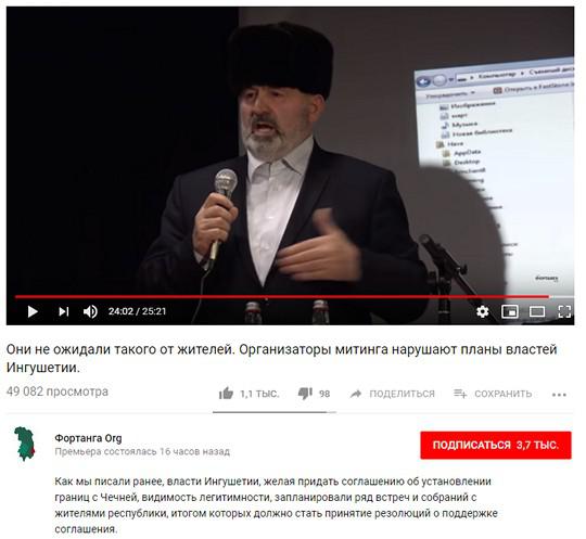 На одном из видео на его странице видно, как эмоционально выступает мужчина со сцены с микрофоном в руках и критикует главу Ингушетии, присутствующие в зале периодически поддерживают его аплодисментами. На другом видео выступает мужчина из зала, он говорит на ингушском языке, его речь также периодически прерывается аплодисментами.