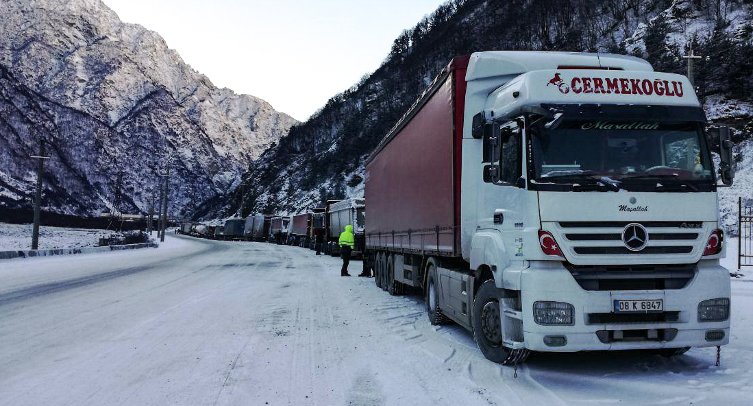 Запрет на проезд большегрузов обусловлен "ухудшением погодных условий на территории Грузии и невозможностью обеспечения безопасного проезда", а также рекомендацией пограничной полиции Грузии, уточнило ведомство.