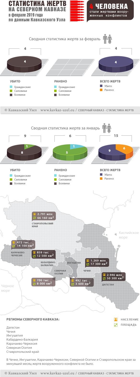 Инфографика. Статистика жертв на Северном Кавказе в феврале 2019 года по данным Кавказского Узла