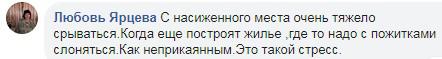 "С насиженного места очень тяжело срываться. Когда еще построят жилье, где-то надо с пожитками слоняться как неприкаянным. Это такой стресс", - написала Любовь Ярцева под новостью на странице интернет-газеты "Знак" в Facebook.