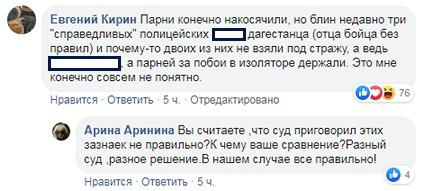Комментарий Кирина также спровоцировал небольшое обсуждение. "Вы считаете, что суд приговорил этих зазнаек не правильно? К чему ваше сравнение? Разный суд, разное решение. В нашем случае все правильно!" - написала Арина Аринина.