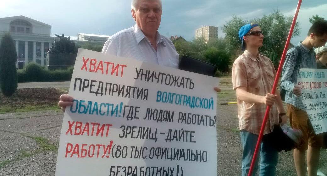 Участники акции в Волгограде выступили против ухудшения социально-экономического положения россиян, коррупции, пенсионной реформы, "Платона". Пикет был согласован на 30 человек, но собрал 37 участников, сообщил организатор.