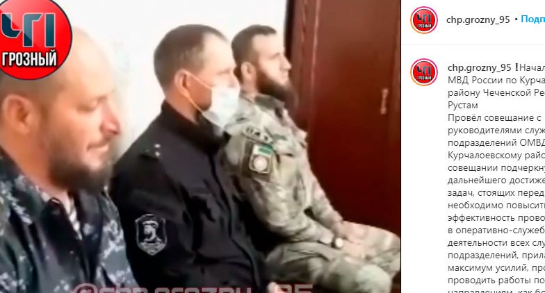 Видеоролик, смонтированный из кадров с совещания в одном из районных ОМВД, опубликован сегодня в Instagram-паблике "ЧП Грозный_95", насчитывающем 69,2 тысячи подписчиков. На видео показан офицер полиции, сидящий в кабинете напротив слушающих его сотрудников.