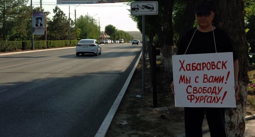 Участник второго одиночного пикета, член партии "Яблоко" Владимир Довданов сообщил корреспонденту "Кавказского узла", что его акция под лозунгом "Хабаровск, мы с вами! Свободу Фургалу!" прошла в центре Элисты, у памятника "Эхо" с 17.35 мск до 18.05 мск.