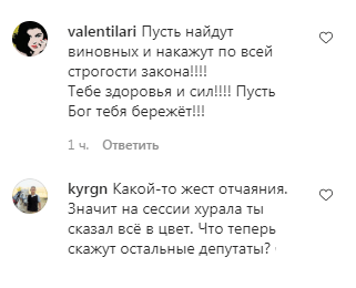 "Пусть найдут виновных и накажут по всей строгости закона!... Тебе здоровья и сил!" - написала пользователь соцсети valentilari.