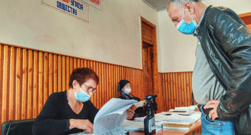 В селении Кумух можно было проголосовать только на одном участке, который располагался в центре города. Избиратели допускались в зал для голосования лишь после того, как проверялась прописка, причем в ее наличии убеждались также присутствовавшие в зале наблюдатели. После проверки прописки избирателю вручали комплект из маски и пары перчаток, а также дезинфицировали руки, после чего он подходил к сотрудникам УИК. Те, в свою очередь, проверяли наличие данных человека в основном списке избирателей. Если человека не находили в основном списке, его включали в резервный список, сообщает корреспондент "Кавказского узла", который 13 сентября присутствовал на участке во время голосования.