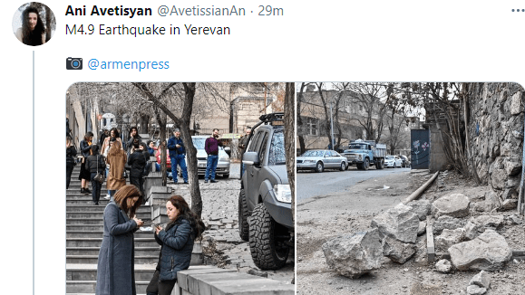 В Ереване произошло землетрясение силой 5-6 баллов, которое ощутили и жители пяти областей Армении. Жильцы ереванских многоэтажек выбежали на улицы из опасений за свою безопасность.