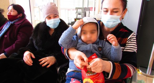 В вестибюле сидели жительницы Узбекистана. Одна из них, Махмира Тураева держала в руках малыша, своего внука. Рядом с ней сидела ее дочь Гульмира, мама ребенка. Их сопровождал супруг Махмиры.