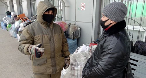 Руслан Атаджанов также дежурил у сваленных в кучу баулов. Одет он был в теплые ватные штаны и куртку, руки защищали от холода теплые перчатки. «Сегодня мороз небольшой – четыре градуса. Я на улице уже третий час, и мне не холодно совсем. На перроне лучше, чем в зале – тут свежий воздух», - сказал он корреспонденту "Кавказского узла".