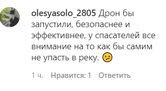 "Дрон бы запустили, безопаснее и эффективнее, у спасателей все внимание на то, как бы самим не упасть в реку", - предложила olesyasolo_2805