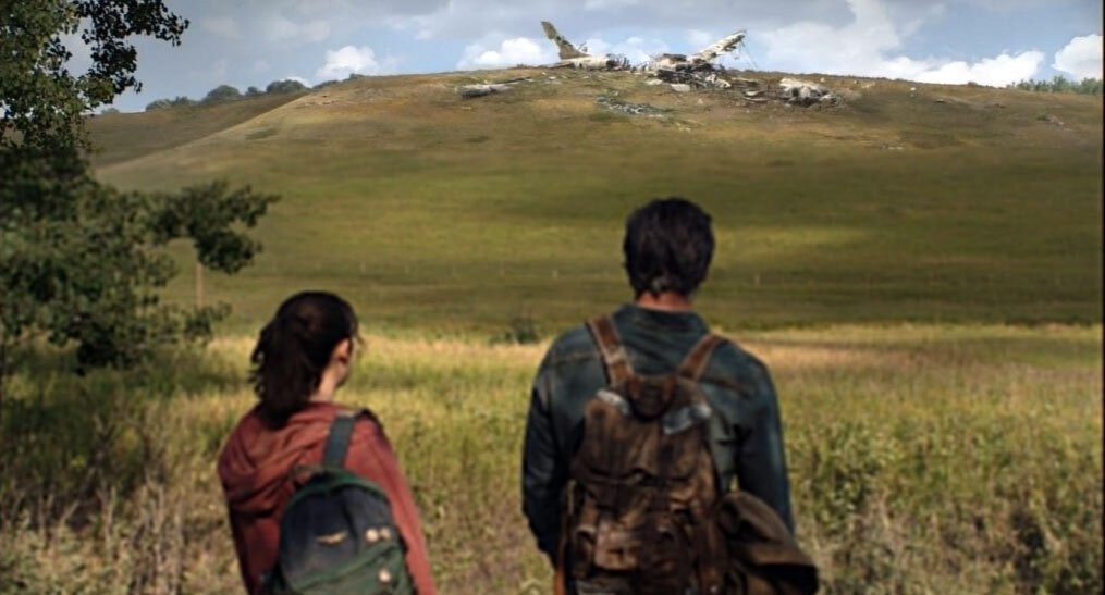 Кадр, представленный HBO, похож на скриншот из игры, по мотивам которой и снят сериал, отмечается в публикации "Медузы". В кадре изображены со спины два главных героя: девочка-подросток Элли и контрабандист Джоэл в исполнении Беллы Рэмси и Педро Паскаля соответственно. На заднем плане видны обломки разбившегося самолета.