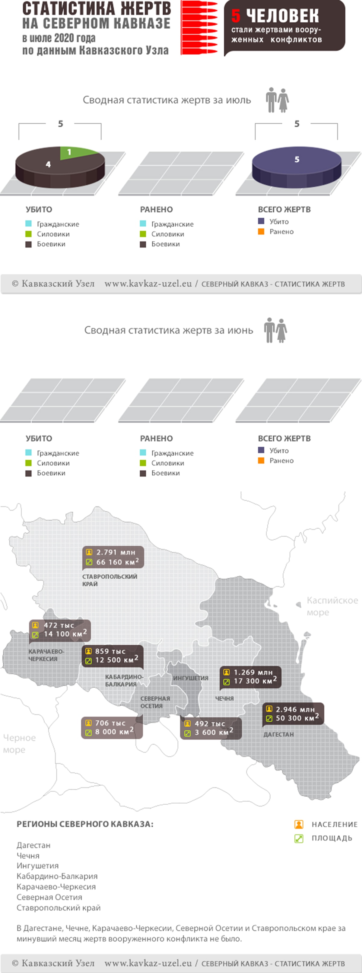 Инфографика. Статистика жертв на Северном Кавказе в июле 2020 года по данным Кавказского узла