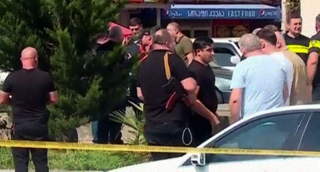 По данным телекомпании "Пирвели", с территории у банка выехал полицейский автомобиль, в котором находился задержанный.