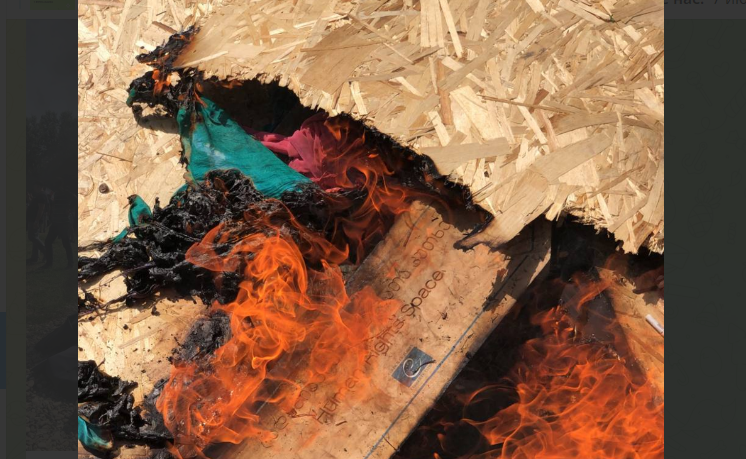 Противники ЛГБТ на территории, где должен был состояться фестиваль Tbilisi Pride, сожгли флаги и символику ЛГБТ. Пожарные тушат очаги возгораний.